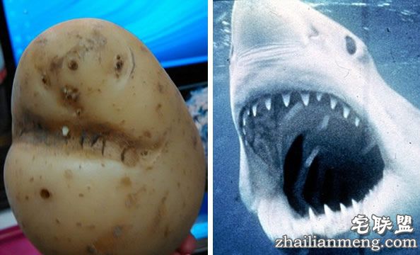 英国诺福克郡67岁男子Lawrence Welham 某日到超市购买食材,当他在超市发现这颗大白鲨形状的马铃薯后,当下先向工作人员表示这件事。