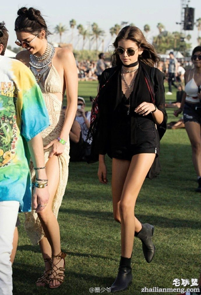 前两天金小妹Kendall Jenner和Kaia Gerber并肩现身2016 Coachella音乐节,于是狗仔镜头下纷纷出现了kaia的这条逆天美腿,老妈是美国历史上的传奇模特Cindy Crawford,10岁便兼职模特登上老妈代言过N季的Versace童装广告片,细直长美腿更是完美复刻,今年才16岁,这种基因也是没sei了….