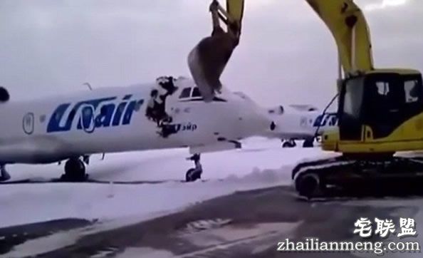 整起事件发生在4年前,但影片最近才被公开,网友看了后疯狂转载。从客机机身可看到属于俄罗斯的UTair 航空,型号为Yak-40,影片中男子坐在挖土机里,朝着客机伸出怪手,机身立刻出现一道裂缝,还因重击而轮胎下陷。