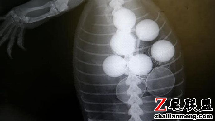 Lachlan 随后便迅速通报动保单位,接着将 Tiger 带至附近的动物医院,没想到照完 X 光后,发现 Tiger 的肚子里塞满了3颗鸡蛋和6颗高尔夫球。