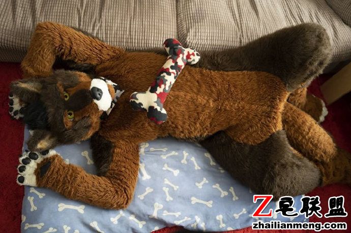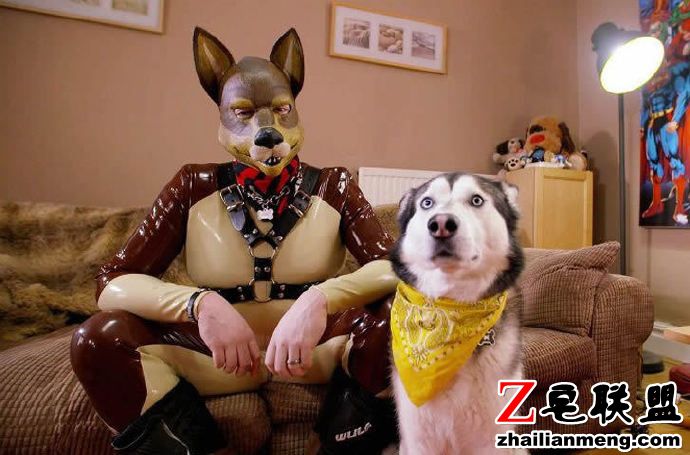 更花了2000英镑订制了一套客制化皮革套服,像狗狗一样有毛茸茸的身体、外表、狗炼和吊带。