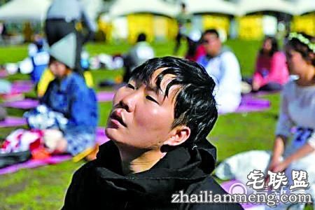 一群人坐在草地上发呆,脑袋放空,据说是为了让人放松下大脑~