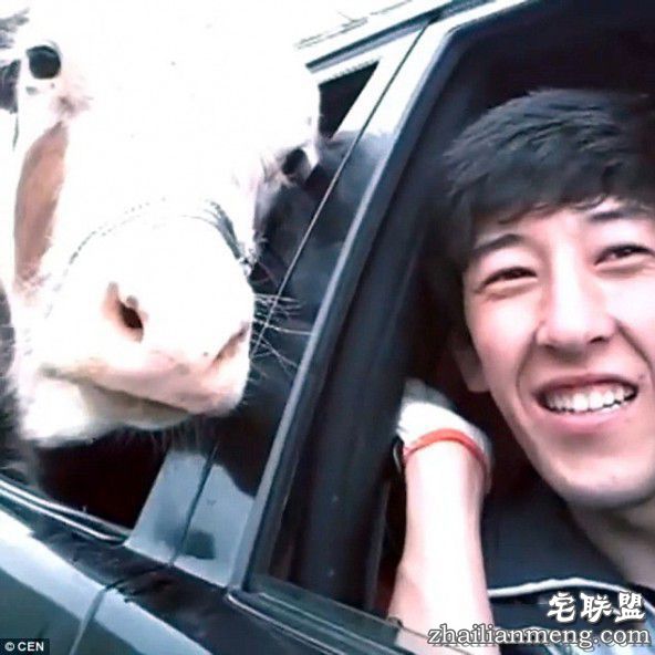 哈萨克斯坦一位聪明的年轻小伙子就给大家做了个很好的示范,让牛跟自己一起坐着小轿车回家!!