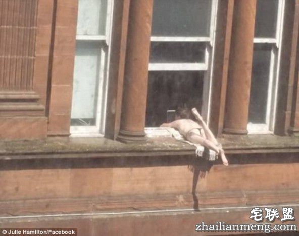 不过日前英国一位豪放的妹子居然把自家窗台当沙滩居然直接趴在窗台上享受日光浴!重点是妹子几乎全裸,哦不,全身上下还穿了一条性感的丁字裤~~~路人都不好意思看啊~