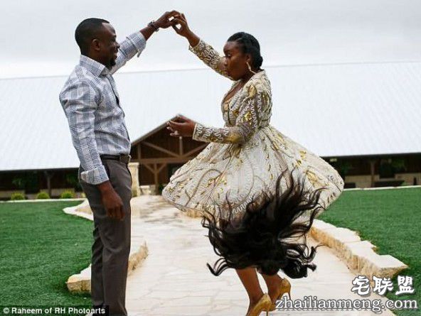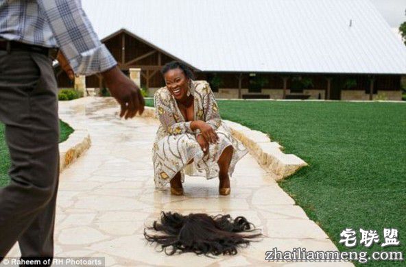 只是没想到拍订婚照时杰西卡旋转的时候头一甩,把带的假发给甩到了地上,这搞笑的一幕也被摄影师拍了下来,这对未婚夫妇大笑起来,觉得很意思,这是最精彩的一天。