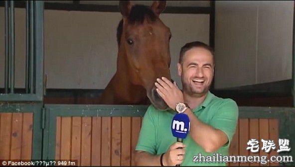 记者被马搞得笑起来