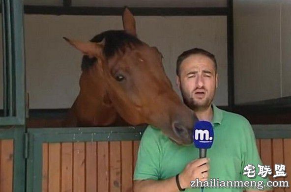 马调戏记者的一幕幕全被摄影师拍下来,观众也看到了这匹搞笑的马。