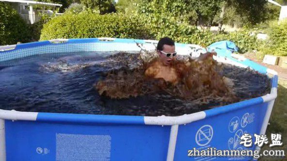 而外国男子塔拉斯并不惧怕这种化学反应,居然将游泳池里倒满可乐,随后加入薄荷糖,在沸腾的可乐中泡澡。。。