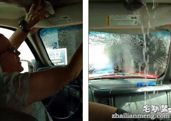 美国加利福尼亚一个家庭开车出门去自动洗车结果忘了关上汽车的天窗,洗车的水冲到汽车顶部时汽车内就像下雨似的,因为是自动洗车间还不能出去只能在车内被洗车水淋湿衣服和汽车座椅,这搞笑的一幕正好被后座的家庭成员拍下来。
