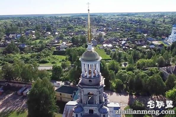 当时有民众使用无人机捕捉美景,沿着Borisoglebskii 修道院的钟塔环绕取景,从这里可以尽收当地美景。正当网友正在欣赏空拍的美景时,突然发现修道院的钟塔有异状,后来仔细一看,里面真的有玄机,一对男女就直接在钟塔内大战。