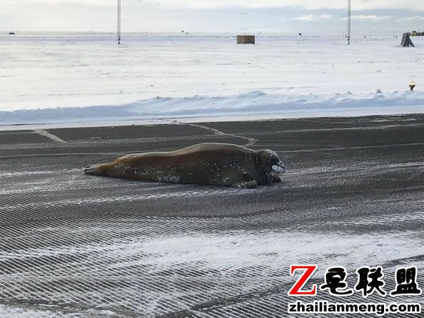 在Utqiagvik 机场工作的Scott Babcock 23日在清理机场跑道的时候,发现一只巨大的生物,他提到,在机场里看到海豹真的不是常有的事情。