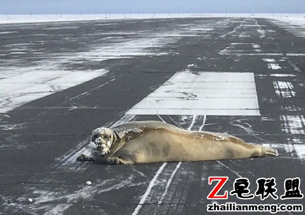 因为在机场的员工是不能随意碰触或处理海洋生物的,于是他就在一旁看着,顺便拍下了这只大海豹在跑道上悠闲晒太阳的样子。