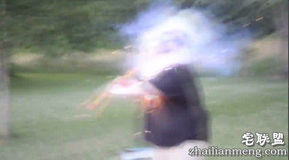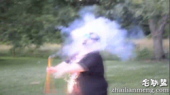 住在美国印第安纳州迪凯特郡的男子扎克,不知是否太无聊,竟于日前在自家后院,拿着一种被称为罗马蜡烛的烟火,点燃后对着自己的脸部射,还请友人帮他拍片作纪念。