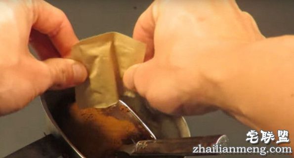 虽然没有找到153年前的咖啡来配饼干,但是小哥还是找了30年前的即溶咖啡粉,他直接把咖啡粉倒进水里搅拌
