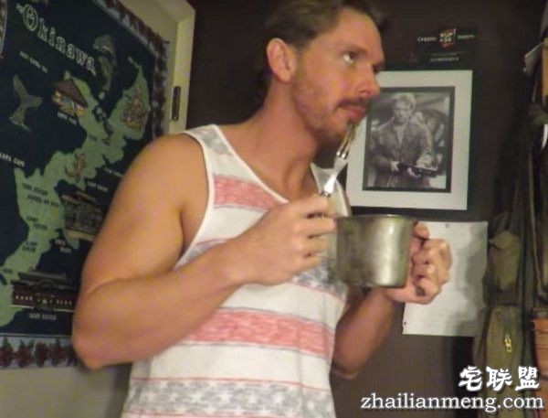 在泡咖啡前,他先把一小块饼干浸泡在水里,虽然是软了点,但是小哥说味道比直接干吃还难吃,泡过水的饼干吃起来就像是橡胶轮胎的味道,算了,还是赶紧泡咖啡。