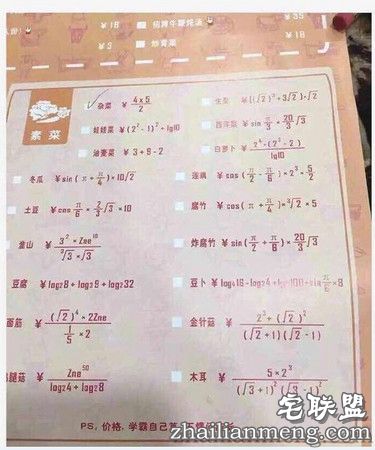 菜单上的价格居然全是数学题,还有根号啊~