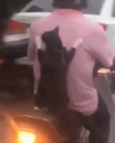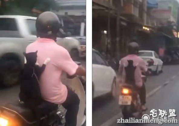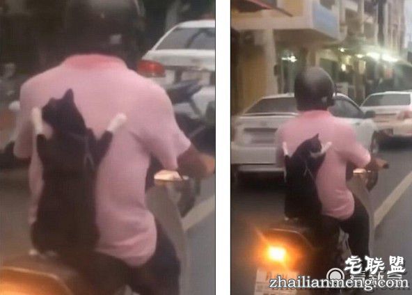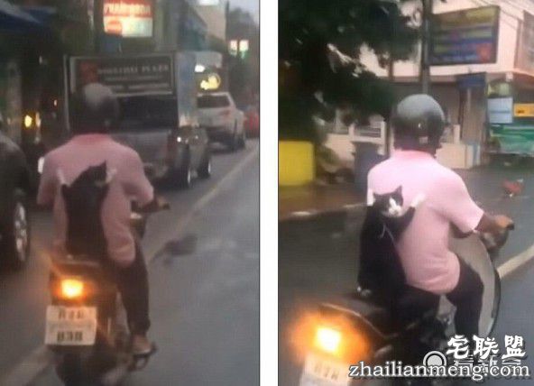 有网友发文称,泰国潮湿的马路上一男子骑着摩托车行驶在路上,搞笑的是骑摩托车的人后面有一只猫,身体蹲在摩托车后座上,两个前爪子紧紧的扒着主人的衣服。
