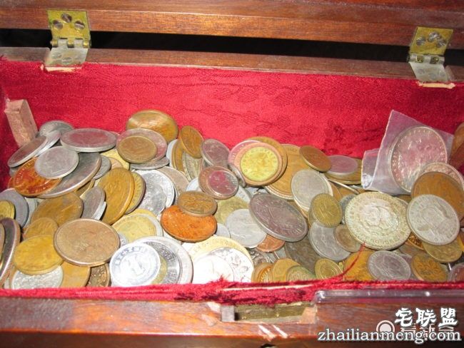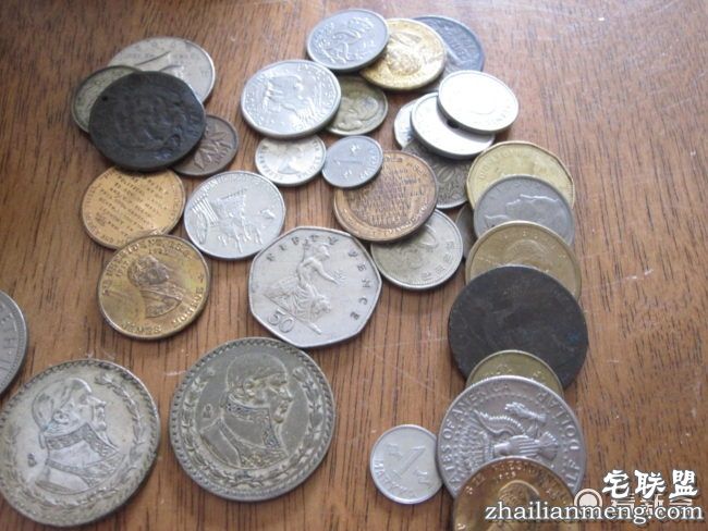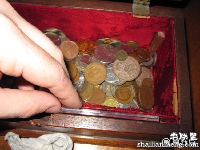 大部分的钱币来自于美国,但其他都是来自世界各地的硬币,我看到有日圆!