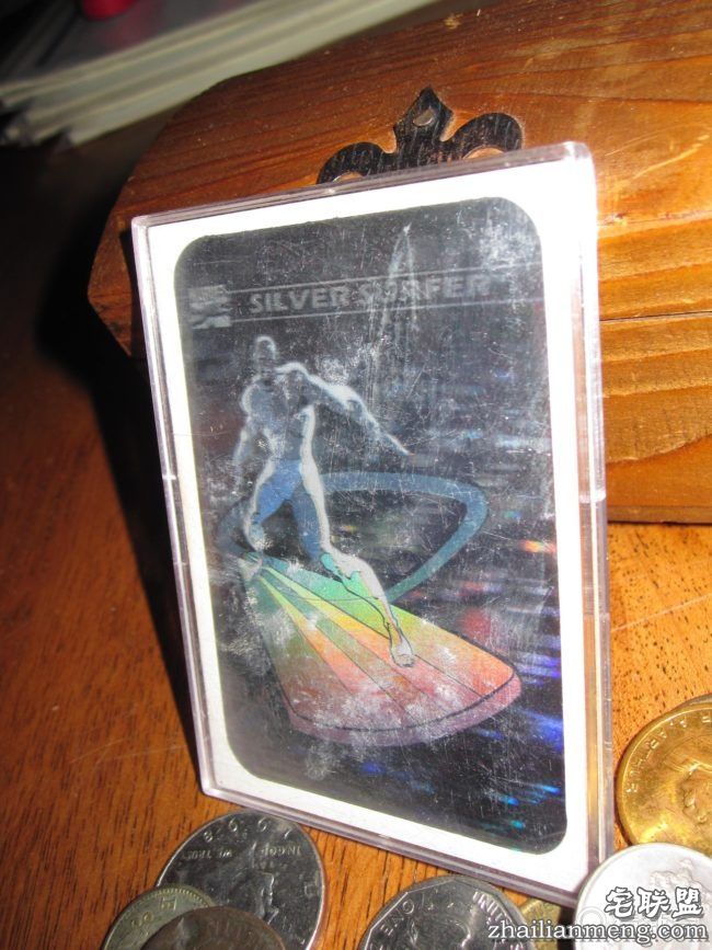 她在暗袋里发现了这张复古的银色冲浪手卡片,而且卡片还用保护套套着。