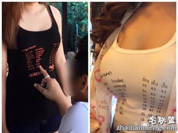 泰国咖啡厅把菜单印衣服上 女服务员穿着让顾客“指胸点餐”。