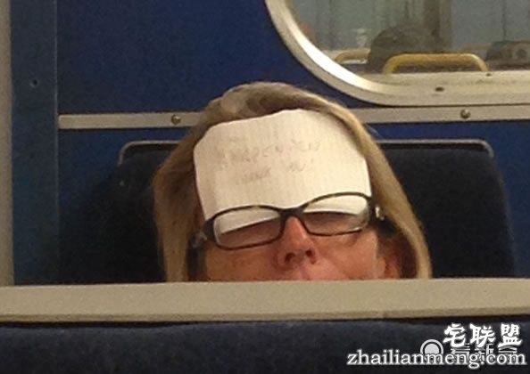 许多人在搭车时会小睡片刻,但也可能会睡过站,就有一名英国女子搭地铁时想要好好地睡觉休息,在自己额头贴上纸条,希望其他乘客可以帮忙叫醒她,以免睡过头。