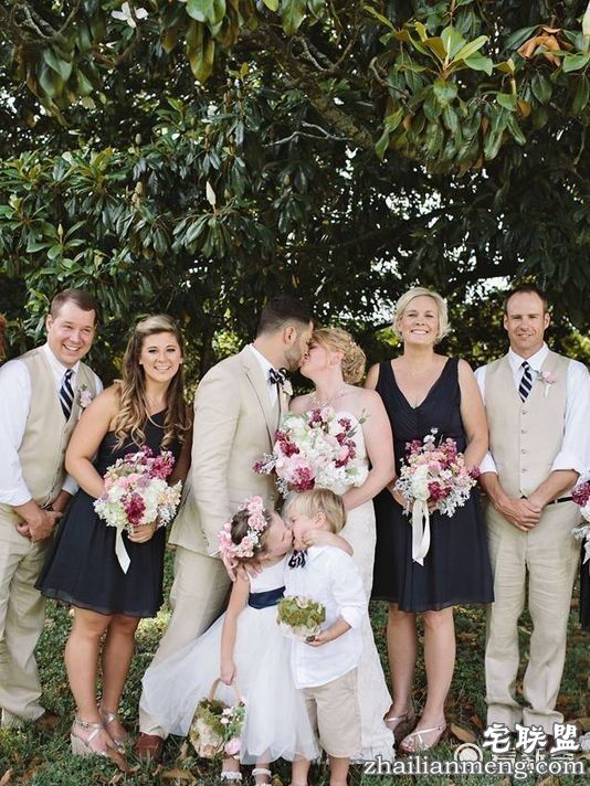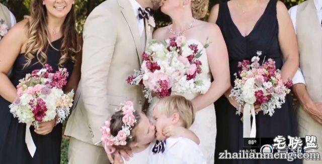 在美国一个小萝莉,在母亲的婚礼上大胆的亲吻小花童,小女孩的行为令在场的人捧腹大笑