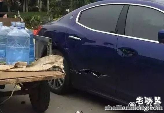从照片中可见,三轮车的铁造部位直接刮到玛莎拉蒂的右边后车门,划出一道长达40公分的裂痕,前门把手也有损坏。据悉,肇事司机是名送水工人,车祸发生后,他也感到不可思议,直说:还说是百万豪车,难道是纸糊的?