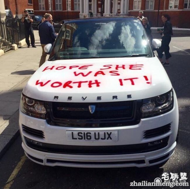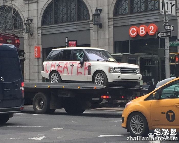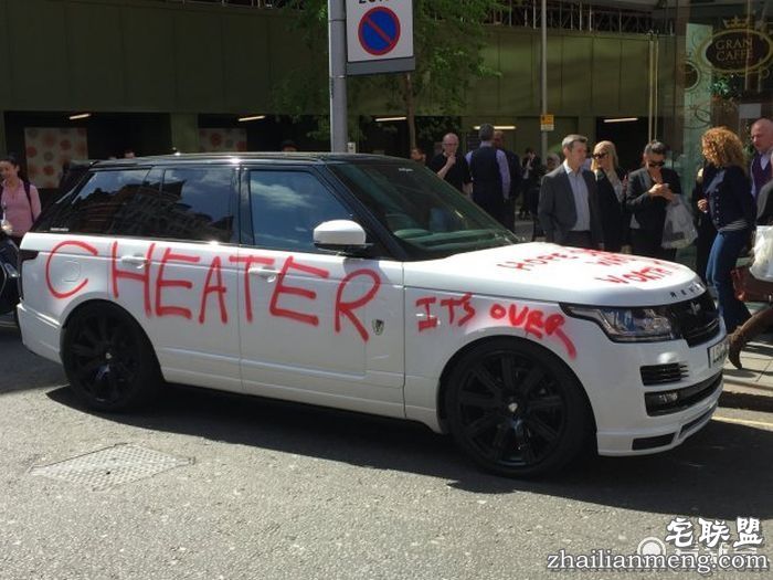 一位英国男子驾驶的揽胜在街头突然被一名女子喷上一个大大的“Cheater”,并还附加了一句"我们结束了",让路人围观。
