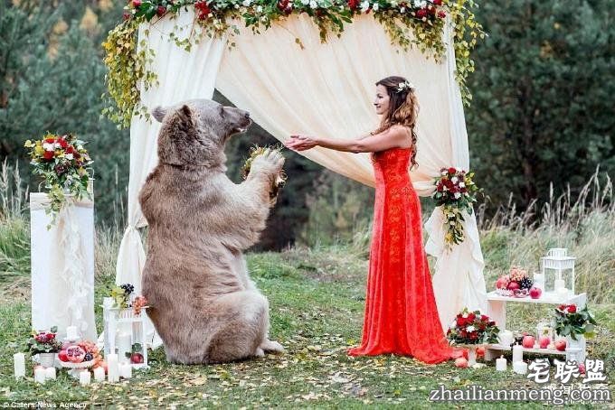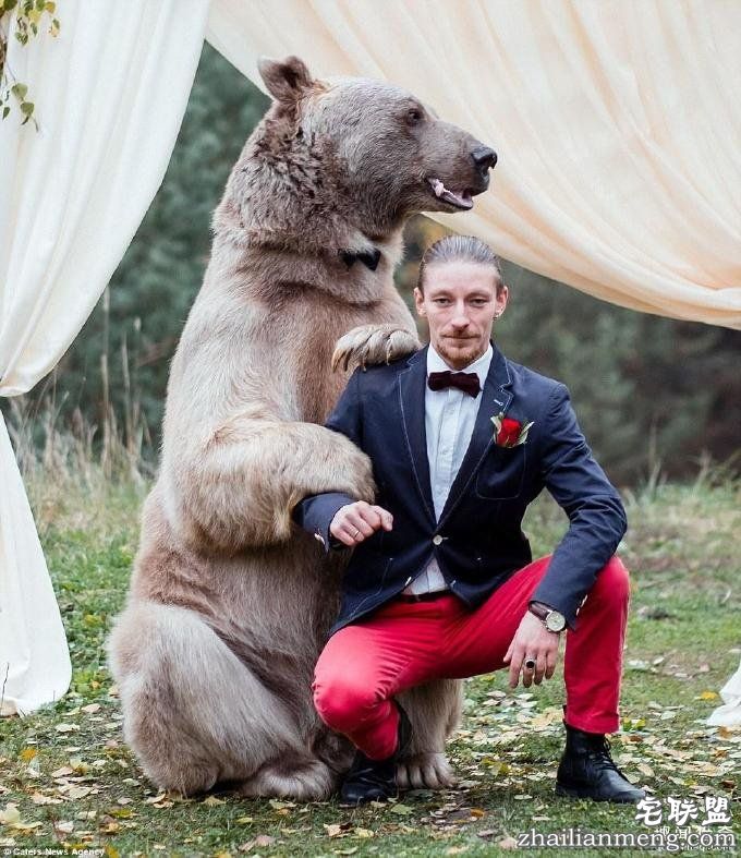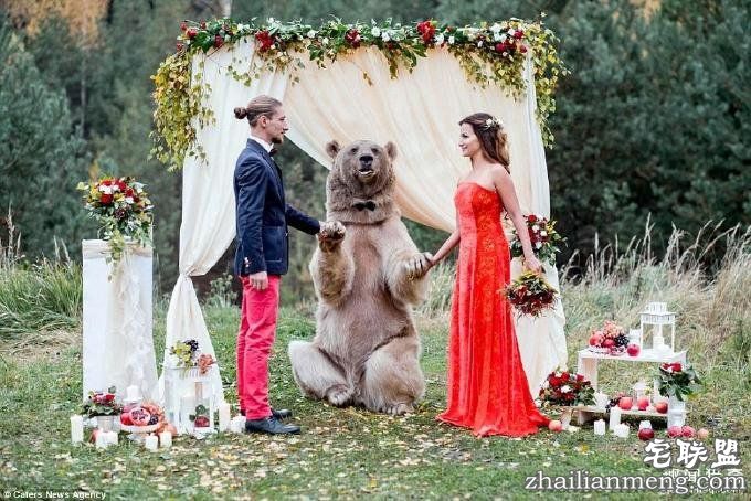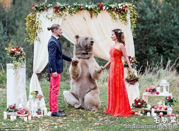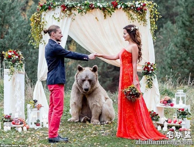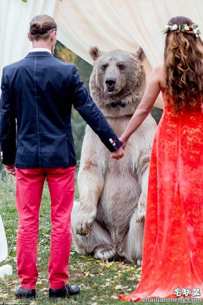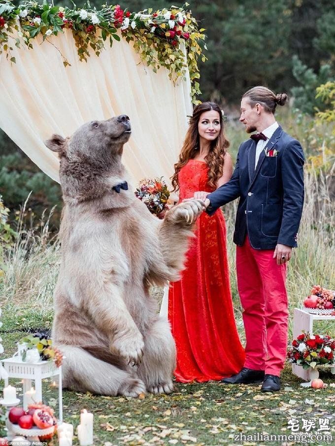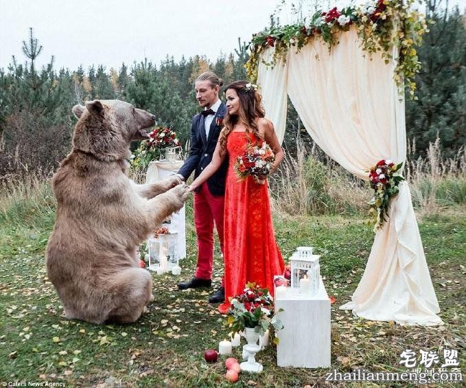 据《每日邮报》报道,近日,一对俄罗斯情侣丹尼斯(Denis)和尼利亚(Nelya)在莫斯科举行了婚礼。与众不同的是,他们邀请了一只重21英石(约267斤)的灰熊上台,作为特别嘉宾为证婚,甚至还吻了新娘。(转载请注明出处,更多精彩内容请关注腾讯国际新闻微信公众号“糖醋国际”。)