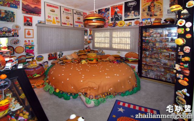 他的家看上去也像是一座膜拜汉堡之神的诡异礼拜堂。