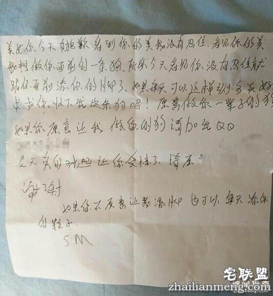 十几分钟后,智女士稳定情绪下楼查看,竟然在一楼看见了一张令她瞠目结舌的纸条:“美女,今天真抱歉,看到你的美我没有忍住,我想做你面前的一条狗,所以今天看见你,就跪你面前舔你的脚了,如果每天可以这样,该多美好,求求你收下我这条狗!”解释完自己的行为,男子还在纸条上表示抱歉,请求智女士原谅,“如果不愿意让我舔脚,也可以每天舔你的鞋子”。纸条还留有QQ号,并请求添加好友。