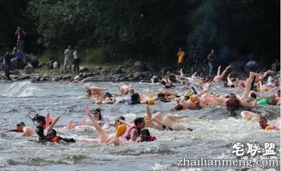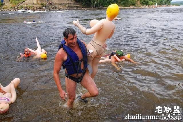 男子抱著充气娃娃游泳渡河争第一,普通的游泳太没创意?那不如试试这个,画面还真是……诡异……▼