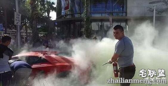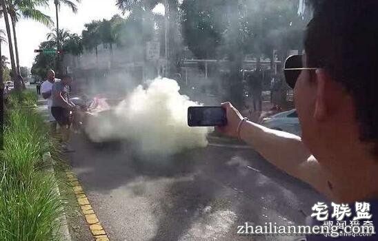 ▼路边的民众见状也都纷纷围过来「看热闹」,毕竟名贵跑车著火的场面可不是每天都能见到。