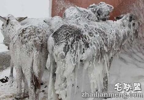 几只驴凑在一起,只有依偎在一起才能互相取暖!仔细看,驴的身上竟然还有冰柱,冷冻成这样了!