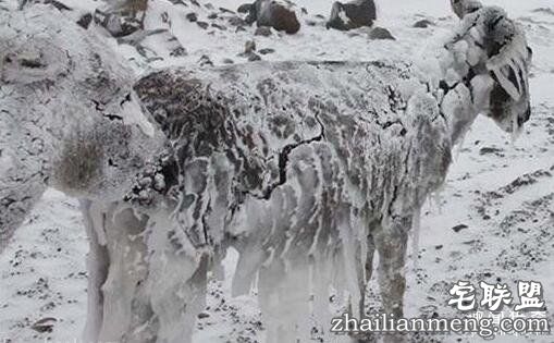 这是雕塑还是几只驴?几只驴身上都是雪,甚至是已经结冰了!这一幕好意外……