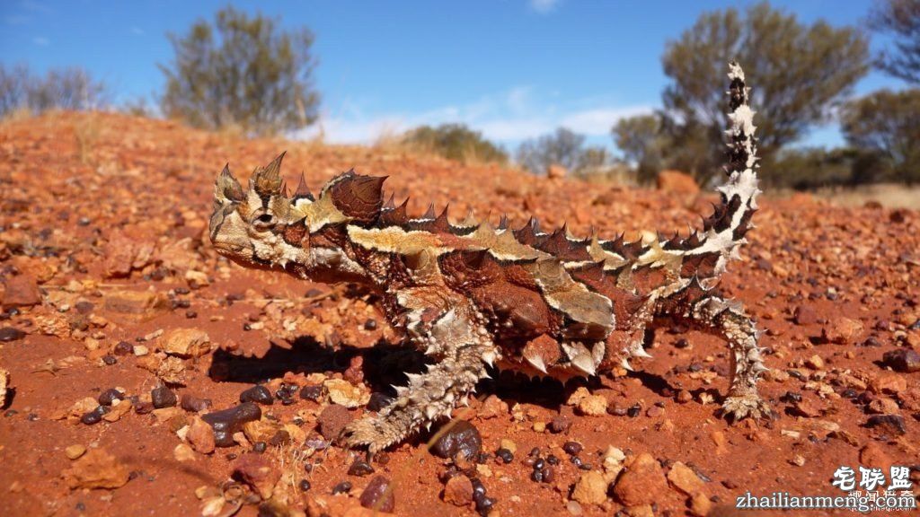 这种生活在澳洲的棘蜥,长度大约是20cm,可以活上15~20年,并有着像着怪物的外表,全身上下充满着棘刺,就像是会走路的仙人掌一样,还有着先进的皮肤迷彩,可以随着太阳日照角度不同变色。有趣的是,它舌头细长,只能黏着小只昆虫,就算走过绿洲,也没办法喝上一口,难道说这种生物真的不用喝水也能生存吗?