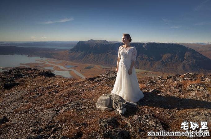 Karol Nienartowicz为身着白色婚纱的妻子在壮美风景前拍摄了这些照片。