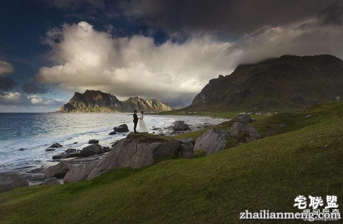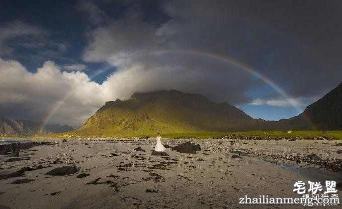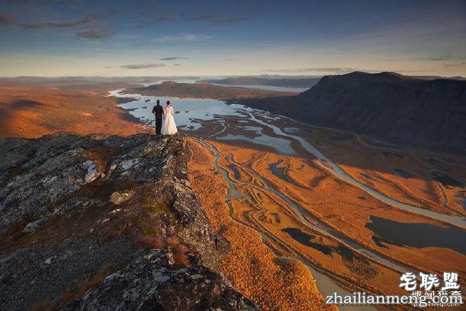图为望着北极光的新娘,这对新婚夫妻捕捉到了很多难得一见的景象。