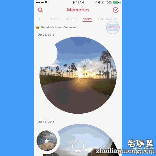 拍摄好的视频会通过 WiFi 或者蓝牙同步到你的手机上,而且很好玩的是,用 Spectacles 拍出来的视频,是圆的。。。