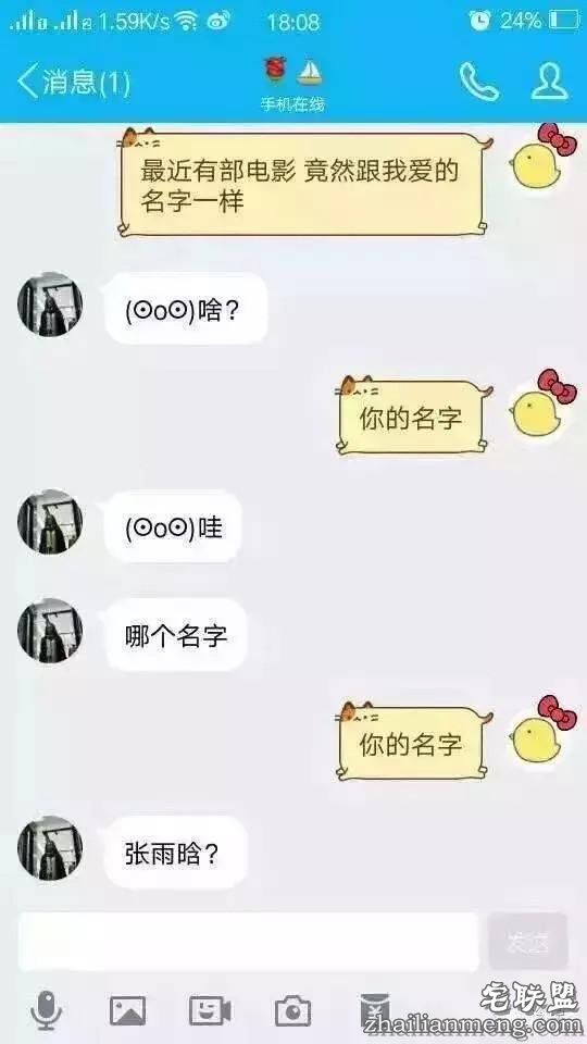 想象中的套路是这样的:“最近有部电影,竟然跟我最爱的名字一样。”“什么电影?”“你的名字。”iuq宅联盟 - 宅男福利社 现实中是这样的iuq宅联盟 - 宅男福利社 你哭着对我说,童话里都是骗人的!iuq宅联盟 - 宅男福利社 推荐使用Chrome,Firefox等高端浏览器无障碍浏览,请记住网址(www.zlm8.com),转载请注明:宅联盟 - 宅男福利社 » 当对方完全不按照套路出牌的时候....! 喜欢 ()