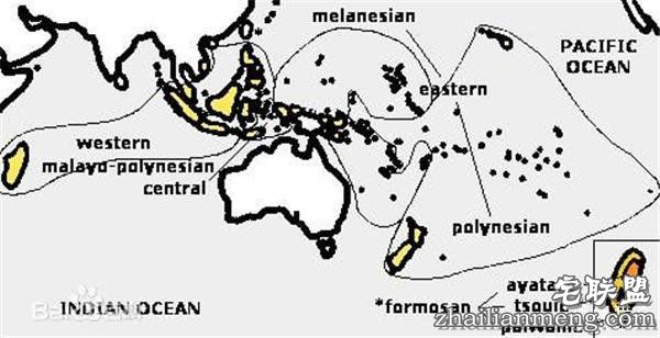 这里介绍一下南岛语系,这是一个主要分布在岛屿上的语系,包括1200种以上的语言。其分布东达南美洲西方的复活节岛,西到东非洲外海的马达加斯加岛,南达新西兰,台湾则是该语系分布的最北端。