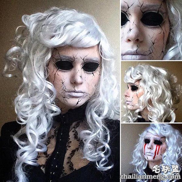 这个化着的恐怖妆容的女孩叫Caroline,她今年才刚满19岁。然而,年纪轻轻的她,就已经是一个小有名气的特效化妆师了。女孩的眼睛是深黑色的,脸上有许多黑色的裂纹,相当精致,绝对是“恐怖晚会”的女主角~