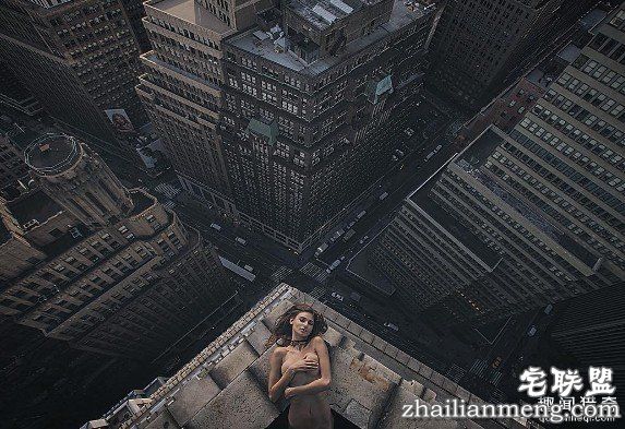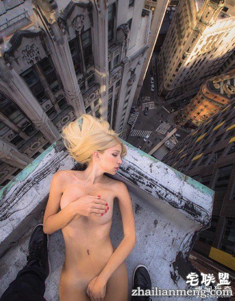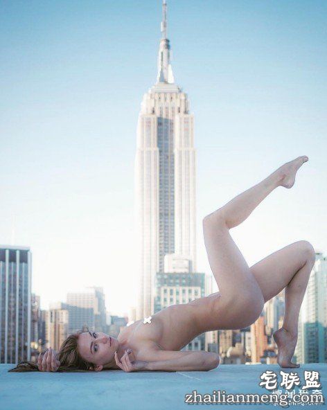 ▲裸体女模在纽约高楼上,展现力与美。