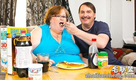 而丈夫也不介意妻子的身材,还经常帮其喂食助其长胖。