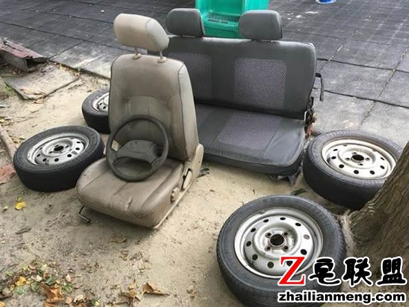 没想到的是,这位认真的爸爸还真的凑齐了4个汽车轮胎、前座驾驶位、轿车后座椅垫、方向盘、排气管等。