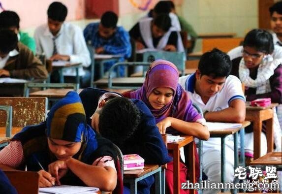 图为印度的中学生考试,看起来十分正规,不过要和下图连着看。