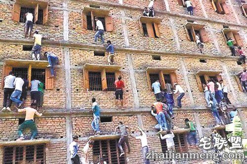印度考生的父母担心孩子考不好不能结业,就采取这种方式递小抄。