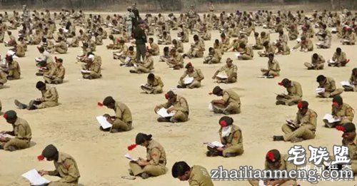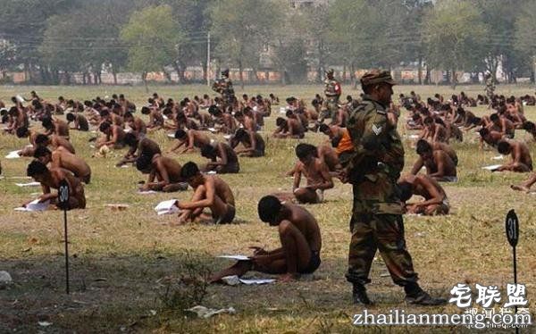 图为印度国防生考试,为了杜绝作弊,考生只能脱光衣服。