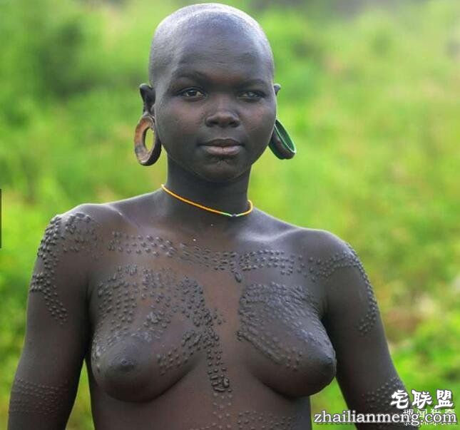 ▼年轻女孩会将脖子上的项炼送给获胜的人。那些女孩身上还有用荆棘、刀片刻出的图案,在苏尔玛文化中,这些伤疤是美丽的重要特征。