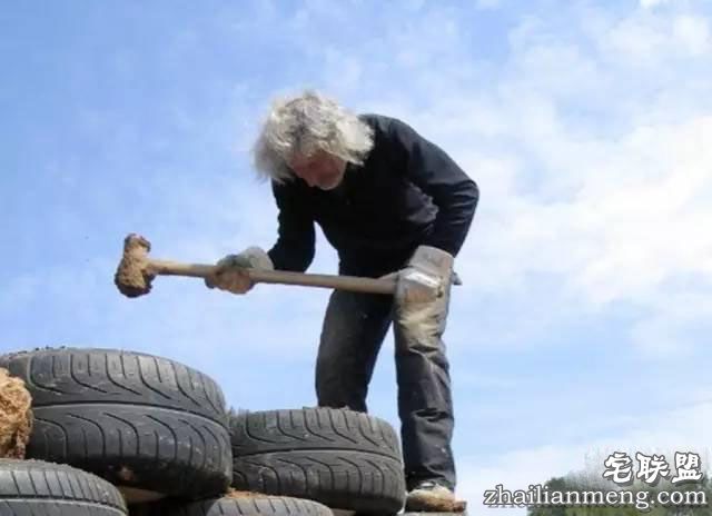雷诺兹(Michael Reynolds),72 岁,美国人,建筑师,50 年来,他只做了一件事:就是用各种各样的垃圾,比如废弃的轮胎、玻璃瓶、易拉罐等,在世界各地造房子,因为很舒适,他自己就在里面住了 30 年。